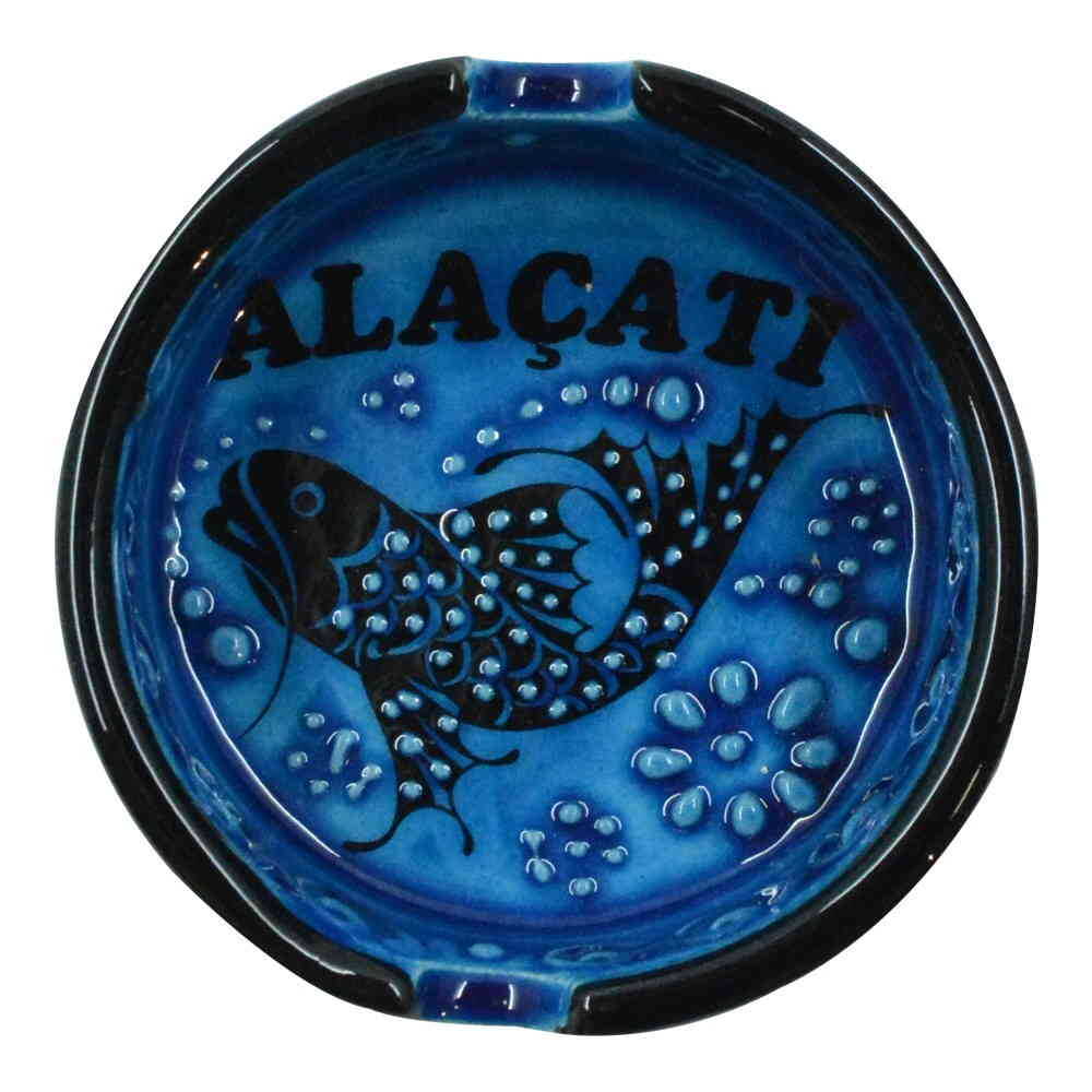 Alacati Themed Turkish Ceramic Turquoise Ashtray Small Size