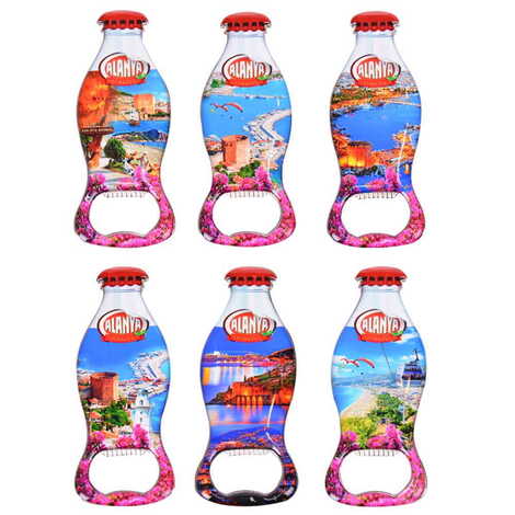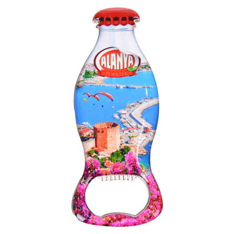 Alanya Themed Coke Bottle Shaped Metal Magnetic Bottle Opener 120x41 mm
