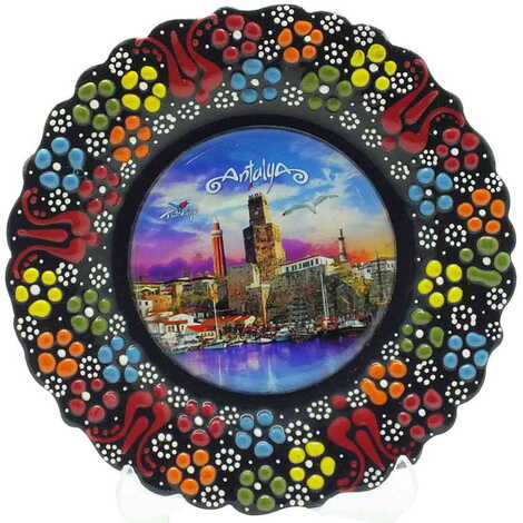 Antalya Themed Turkish Ceramic Plate With Epoxy 12 Cm