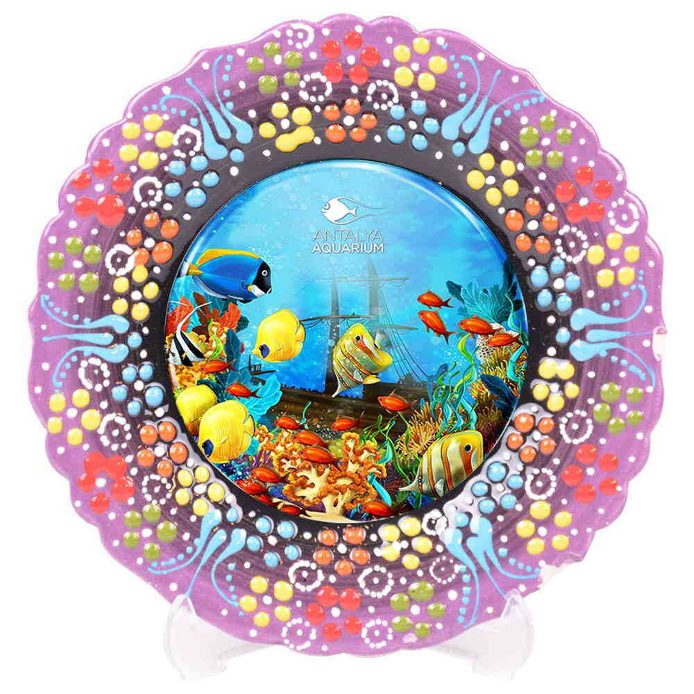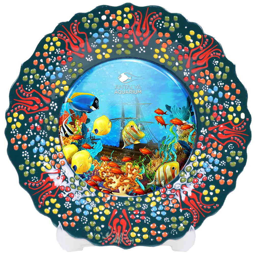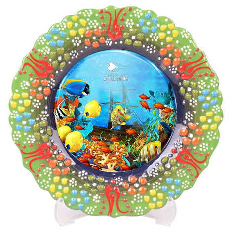 Aquapark Themed Turkish Ceramic Plate With Epoxy 25 Cm