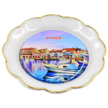 Ayvalik Themed Epoxy Dome Plate Shaped Souvenir Fridge Magnet 73 mm
