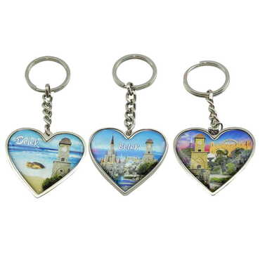 Belek Themed Metal Heart ShapedDouble Face Keychain 45x90 mm