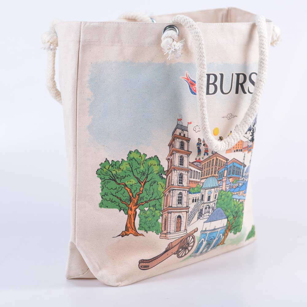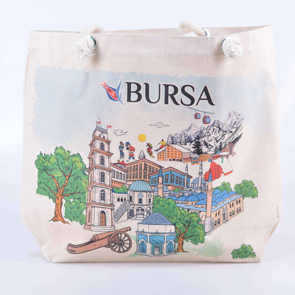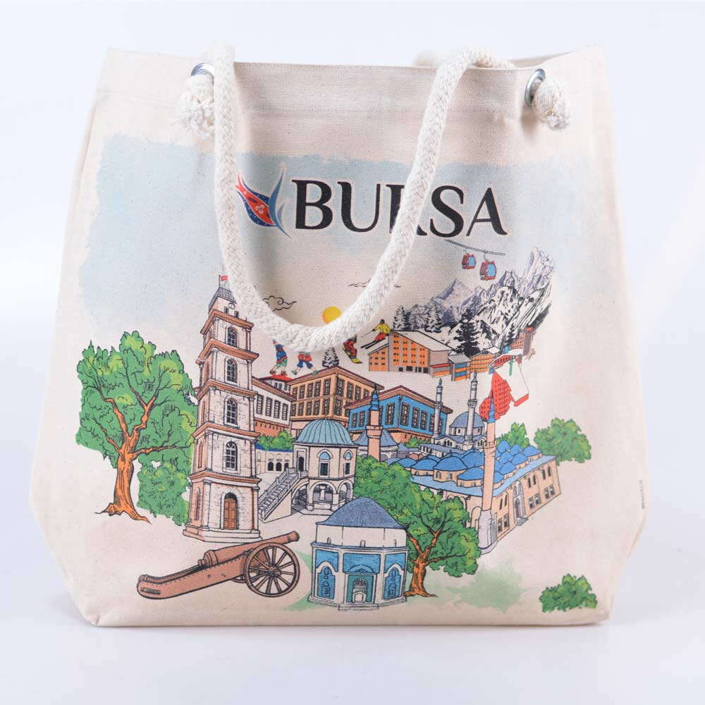 Toptan Bursa Temalı Dijital Baskılı Kanvas Plaj Çantası