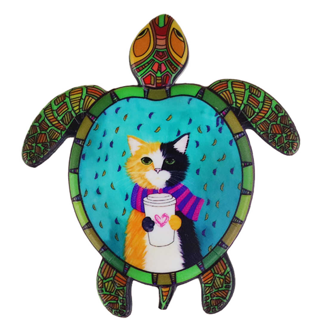 Cat Themed UV Printed Turtle Shaped Refrigerator Magnet 80x74 mm