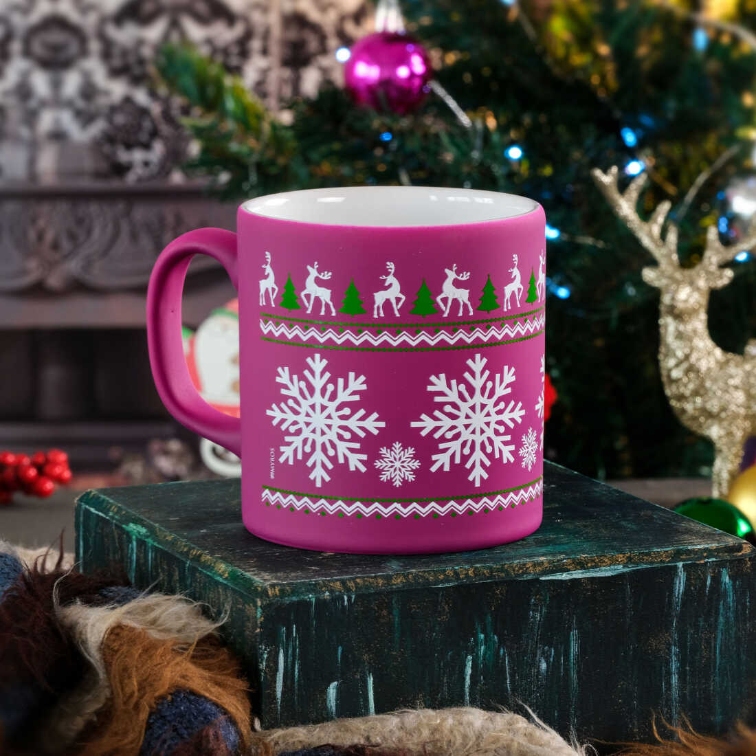 Wholesale Purple Deer Snowflake Ceramic Mug