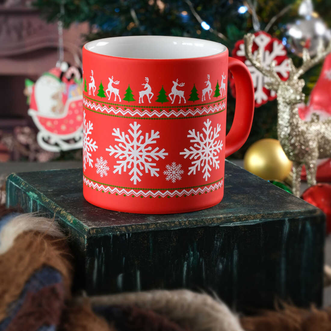 Wholesale Red Reindeer Snowflake Ceramic Mug