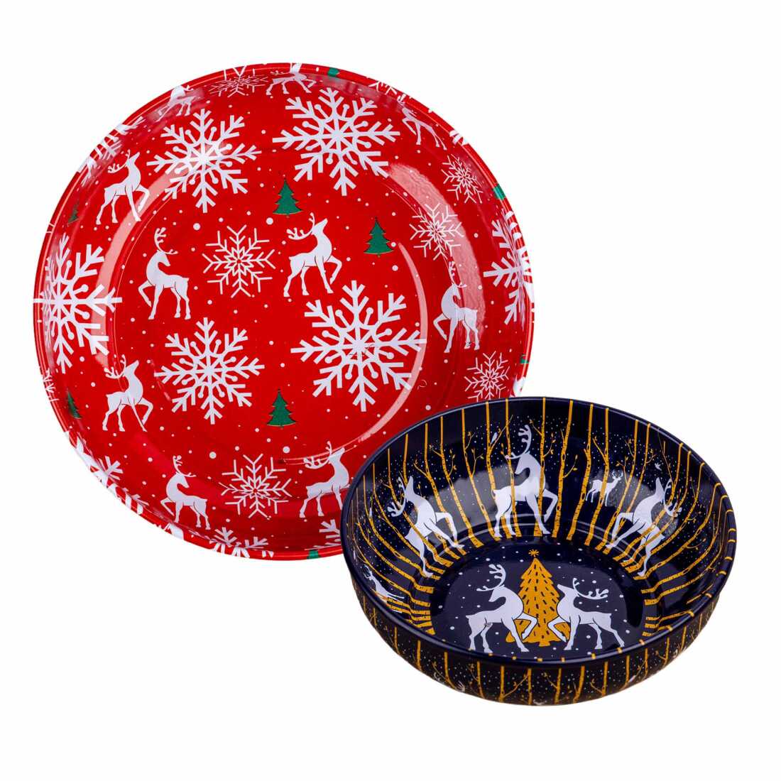 Wholesale Christmas Themed Metal Tray Bowl Set