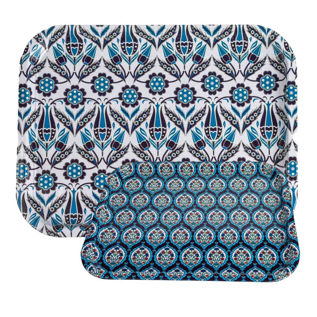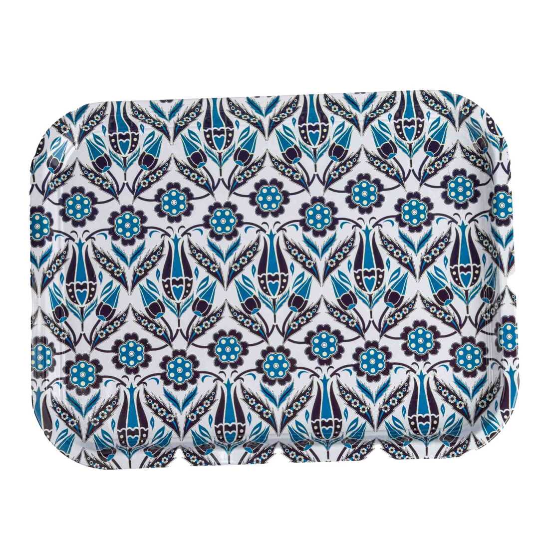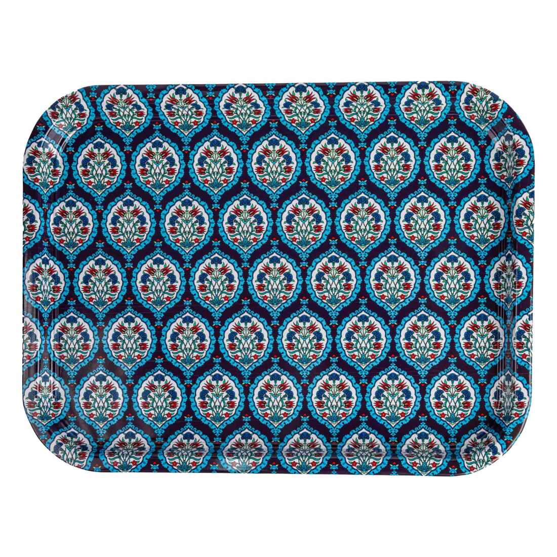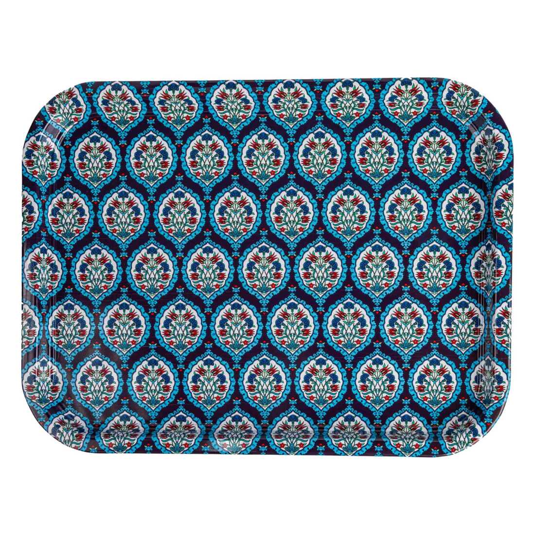 Çini Temalı Metal Dikdörtgen Büyük Tepsi 29,5*22,5 Cm