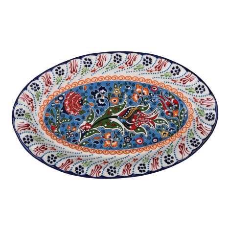 Çini Temalı Oval Kayık Tabak 30X18X4 Cm
