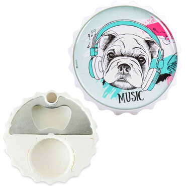 Dog Themed Round Cap Shaped Magnetic Bottle Opener 63x15 mm