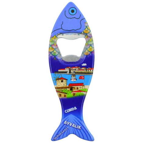 Cunda Themed Customised UV Printed Fish Shape Printed Plastic Base Bottle Opener 42x130 mm