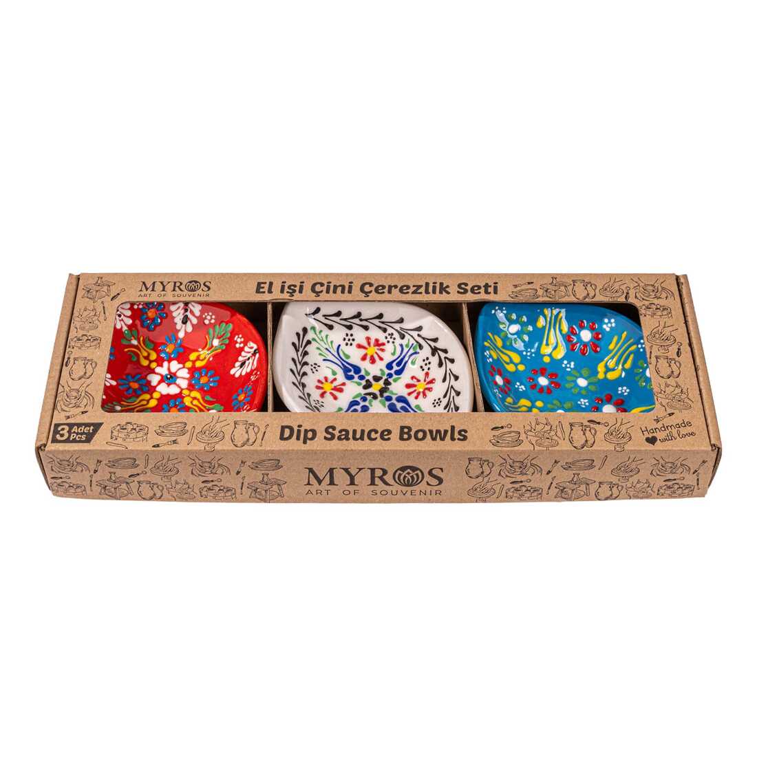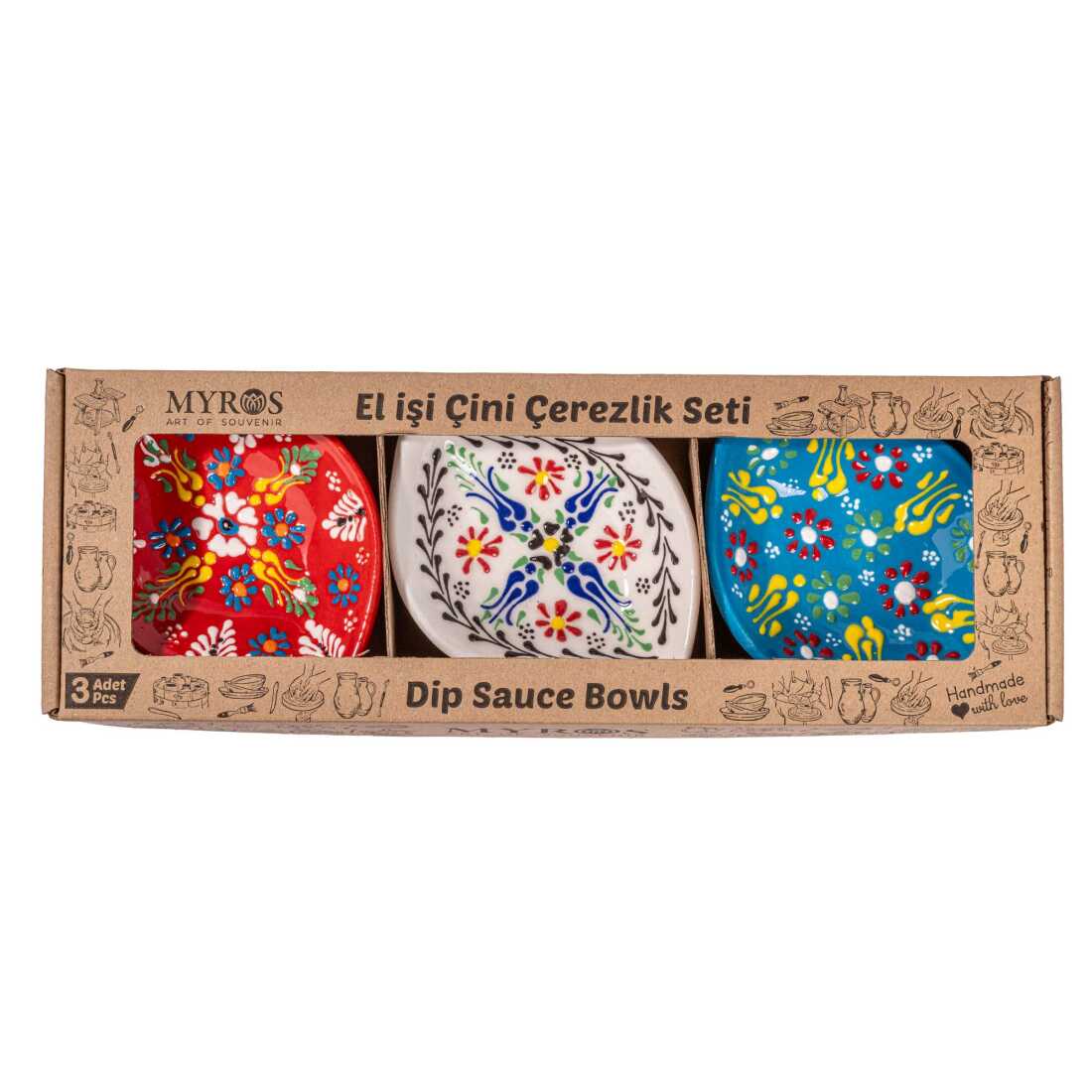Çini Temalı Özel Kabartma Üçlü Yuvarlak Çerezlik Küçük 13 Cm