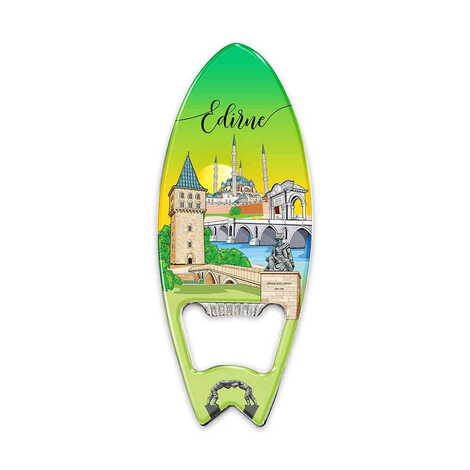 Edirne Themed Surf Board Shaped Metal Magnetic Bottle Opener 128x45 mm
