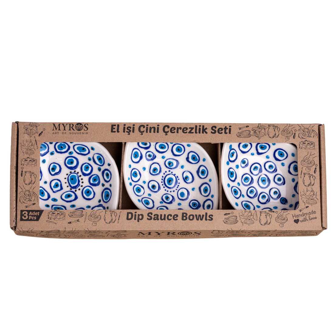 Embossed Evil Eye Leaf Snack Bowl Set of 3 in Gift Box