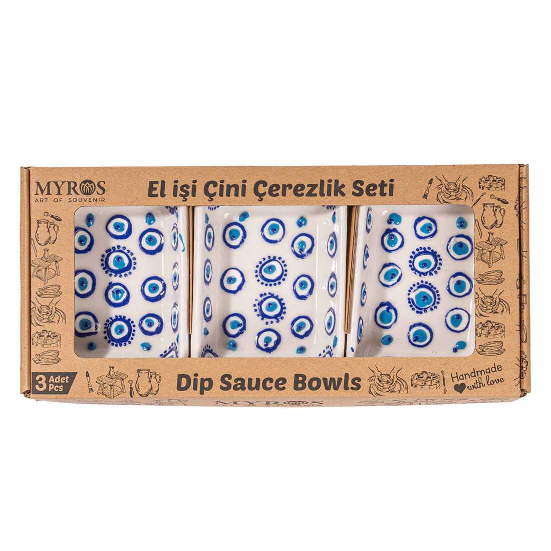 Nazar Themed Special Embossed Round Triple Snack Bowl Medium 18 cm