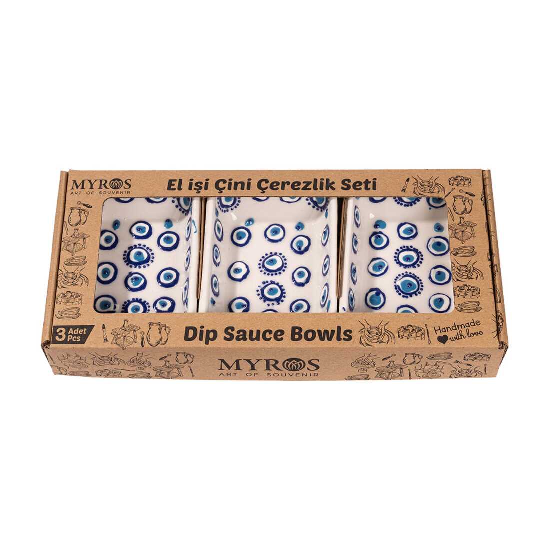 Embossed Evil Eye Triple Boxed Rectangular Snack Bowl