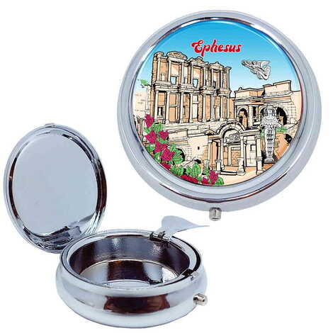 Ephesus Themed Customised Metal Epoxy Travel Pocket Ashtray 50x15 mm