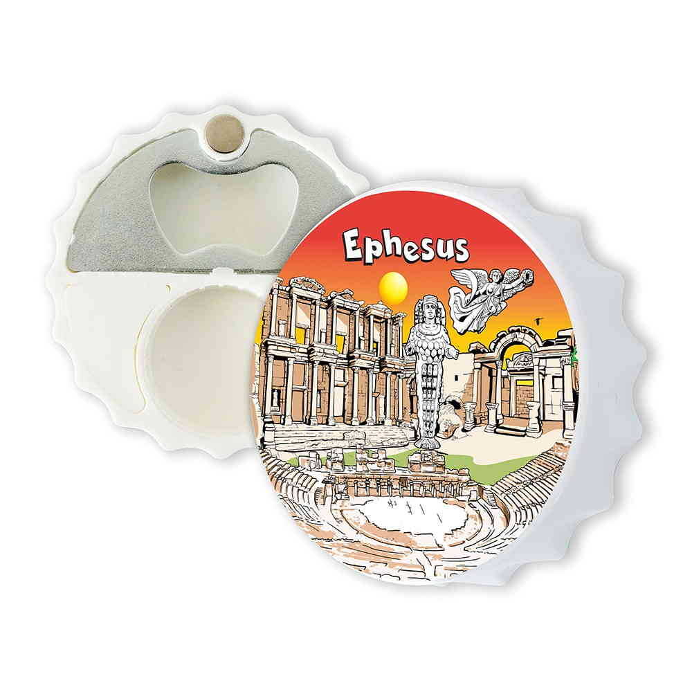 Ephesus Themed Customised Uv Printed Bottle Cap Shaped Plastic Base Bottle Opener 63x15 mm