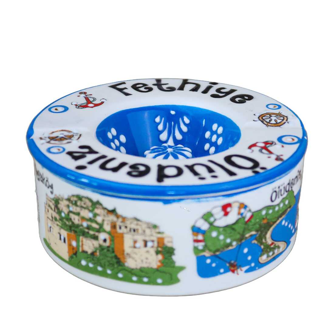 Fethiye Region Themed Traditional Ceramic Lidded Small Ashtray 110 mm