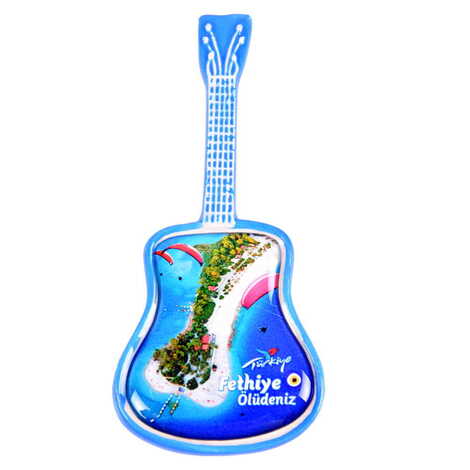 Fethiye Themed Ceramic Guitar Shaped Fridge Magnet