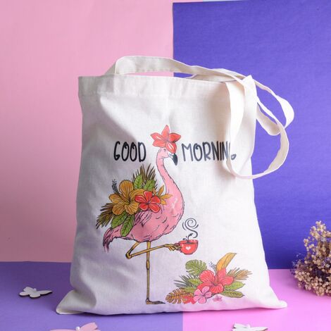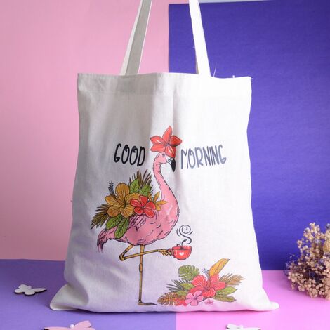 Toptan Flamingo Temalı Ham Renkli Bez Çanta 400x350 mm