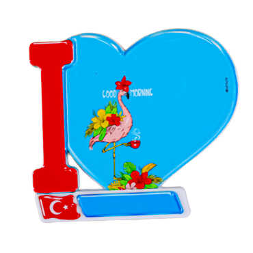 Flamingo Temalı Uv Baskılı Kalp Şekilli Magnet 86x62 mm