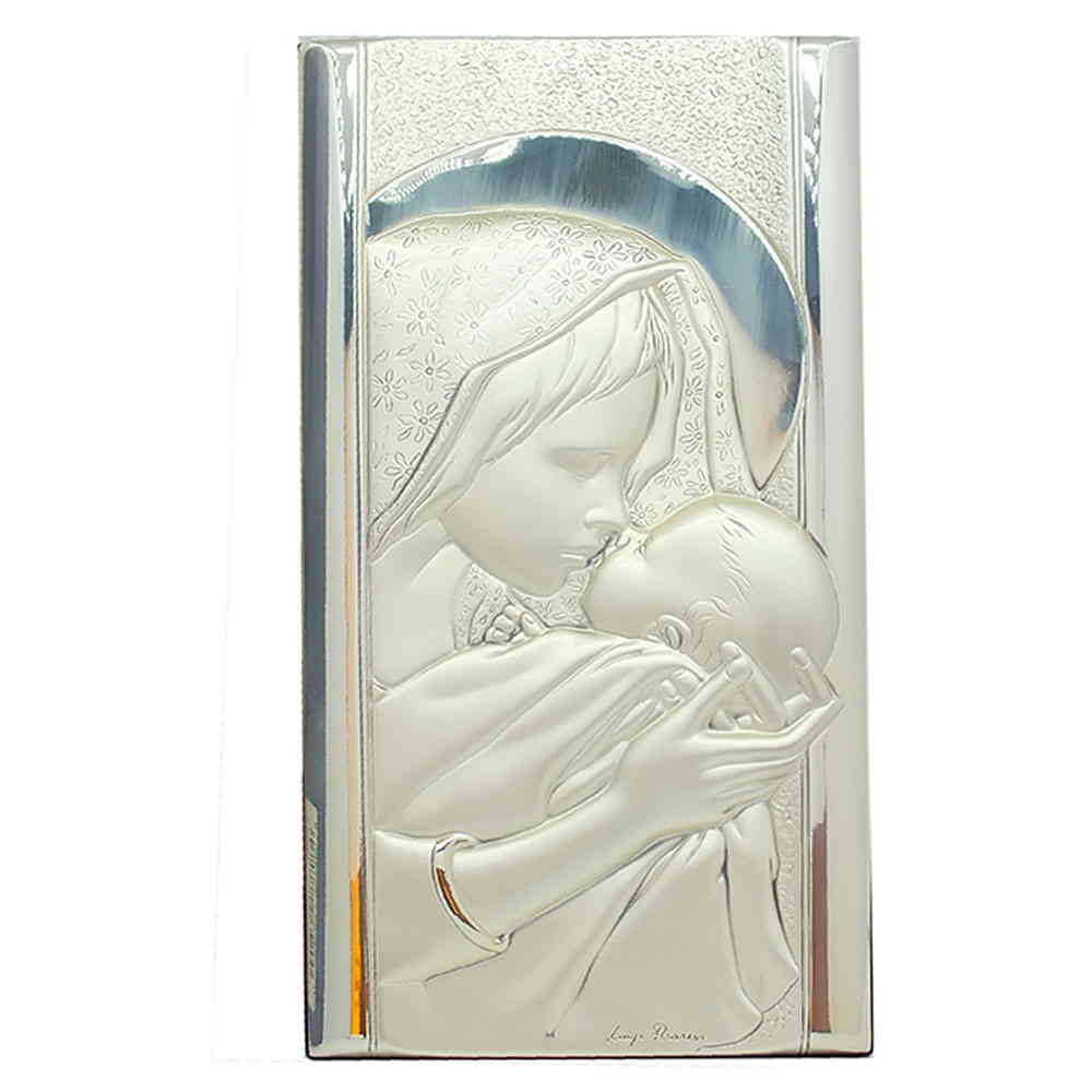 Virgin Mary And Baby Jesus With Bi-Laminated Silver Plaque And Wooden Icon 120x230 mm