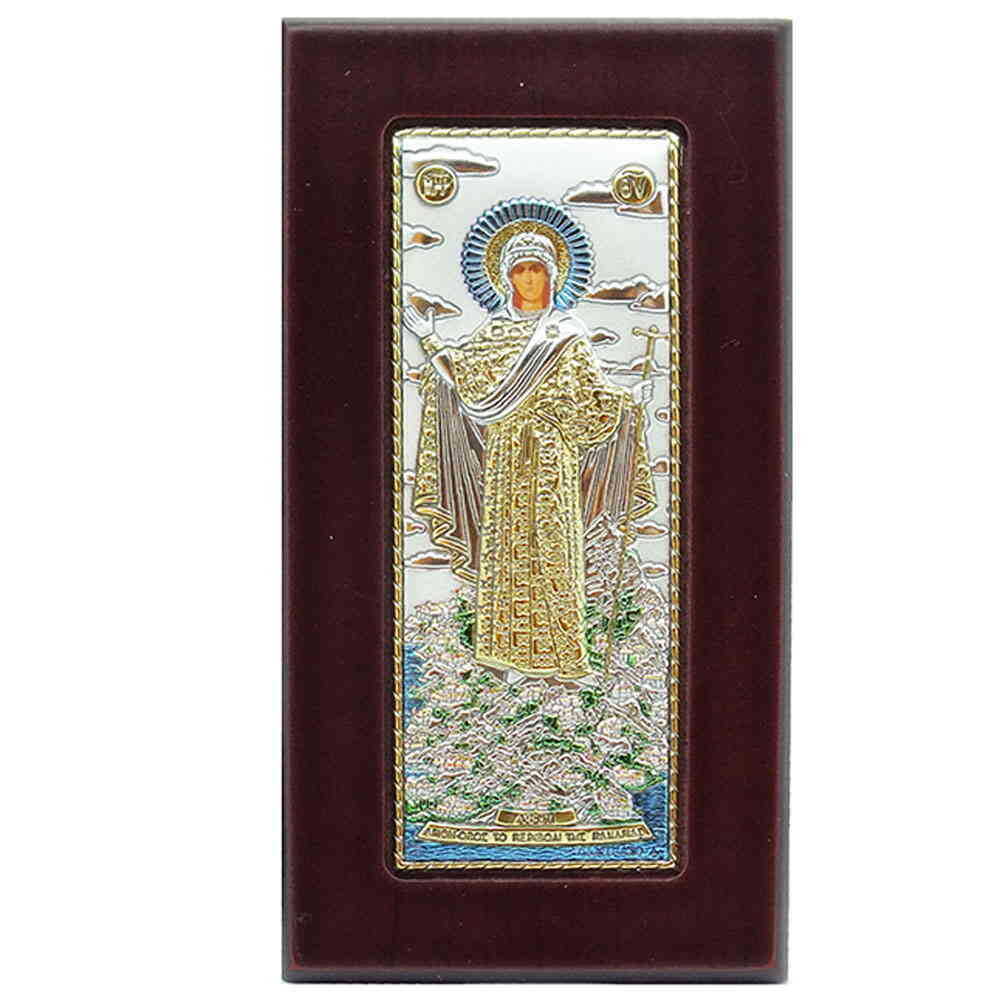 Wooden Base Silver Virgin Mary Anspoilt Serigraphy Gold Icon 55X70 mm