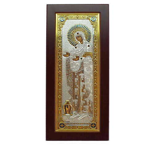 Virgin Mary Gerontissa Icon Handmade With Silver 950, Wooden Icon 135x275 mm