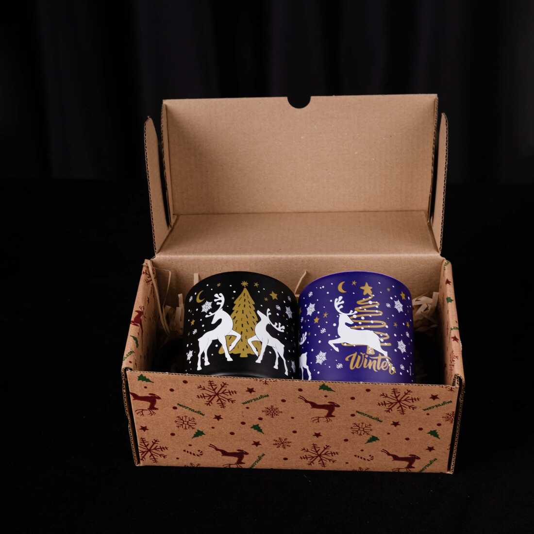 Toptan Lacivert Geyikli Winter Cam Bardak Mum