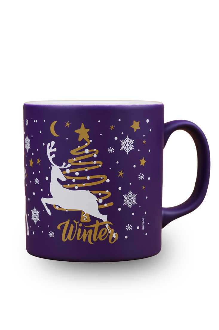 Toptan Mor Geyikli Kar Tanesi Seramik Kupa