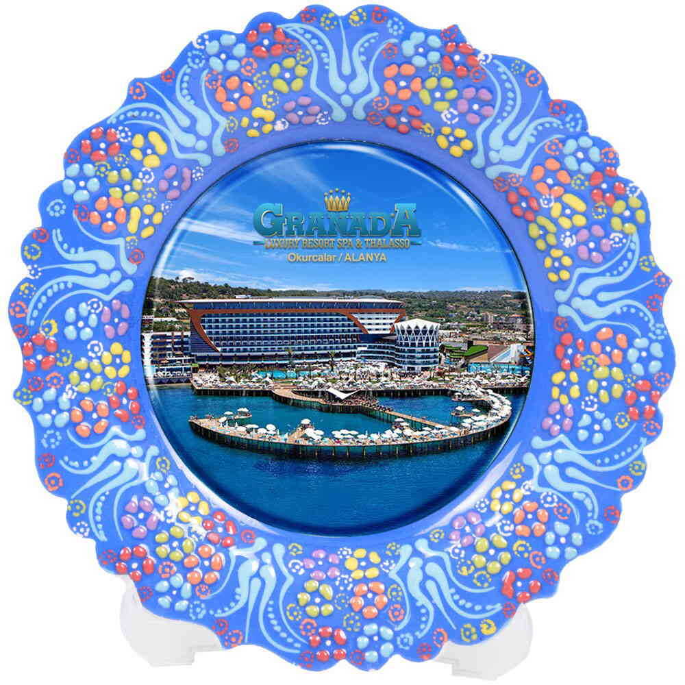 Manavgat Themed Turkish Ceramic Plate With Epoxy 25 Cm