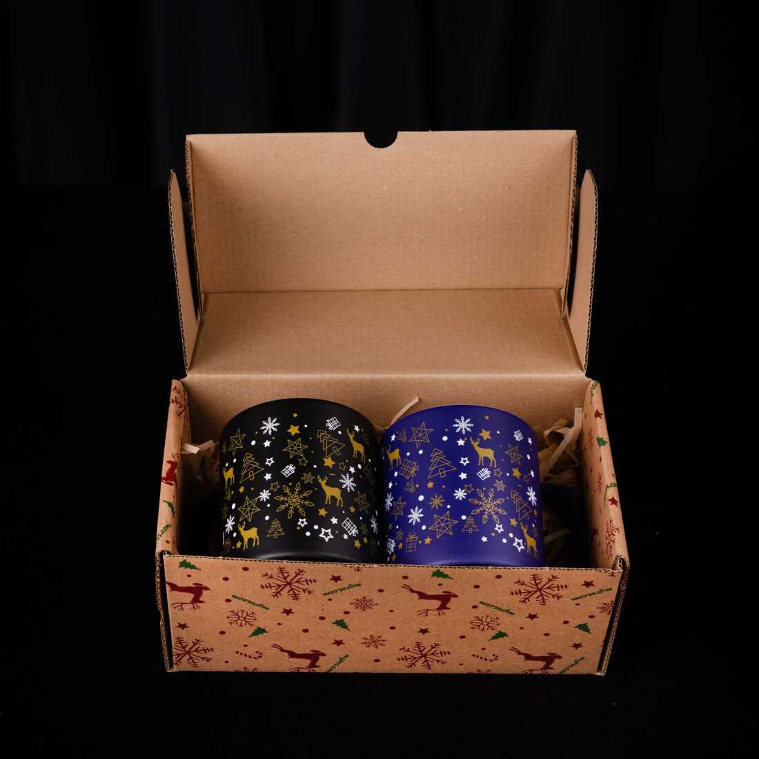 Wholesale Dark Blue Deer Themed Winter Glass Candle