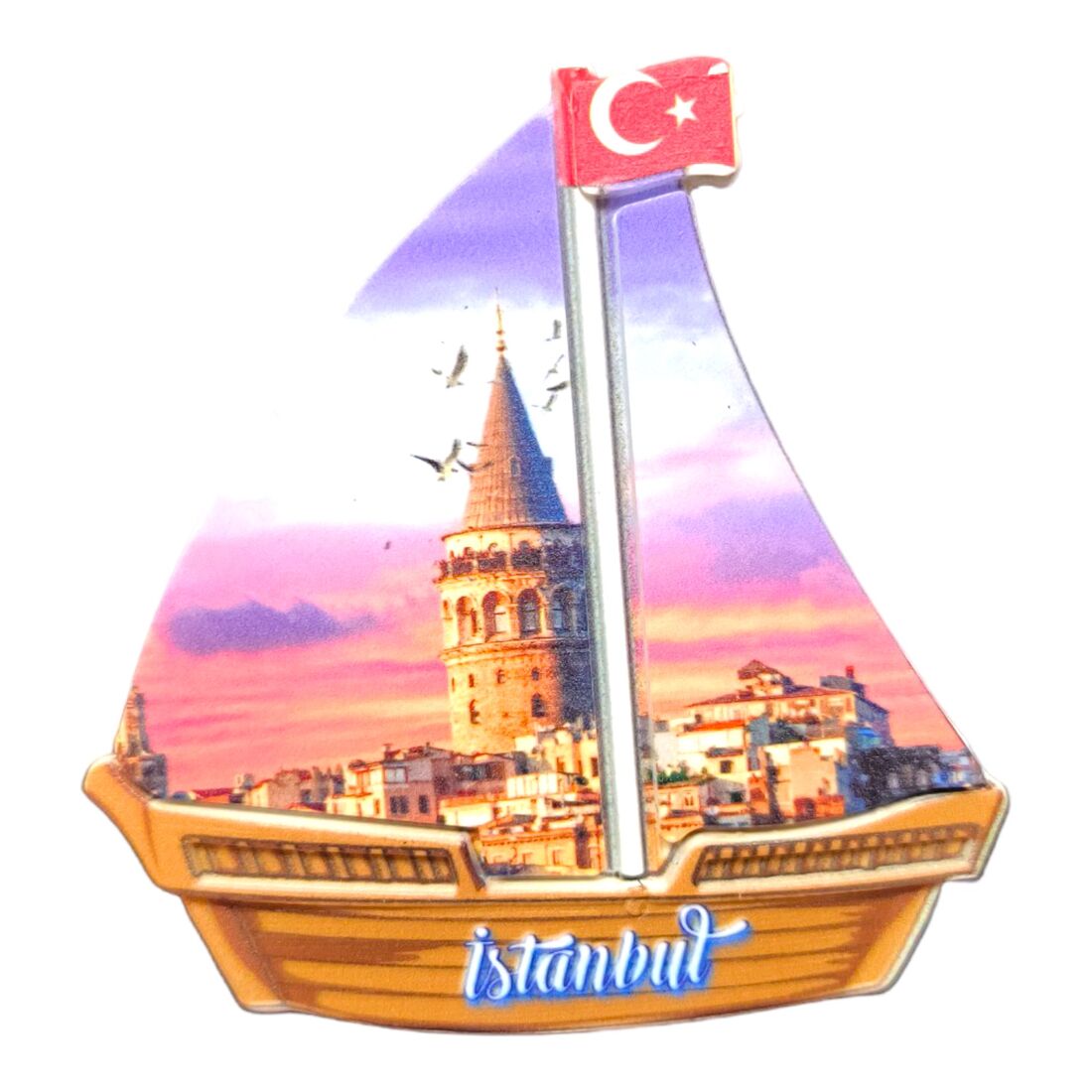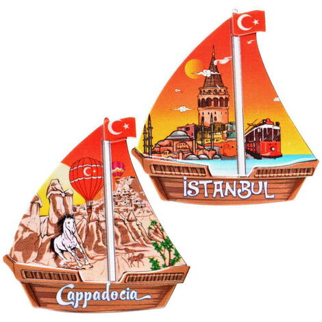 Istanbul Themed Customised UV Printed Plastic Base Sail Ship Shaped Fridge Magnet 77x80 mm