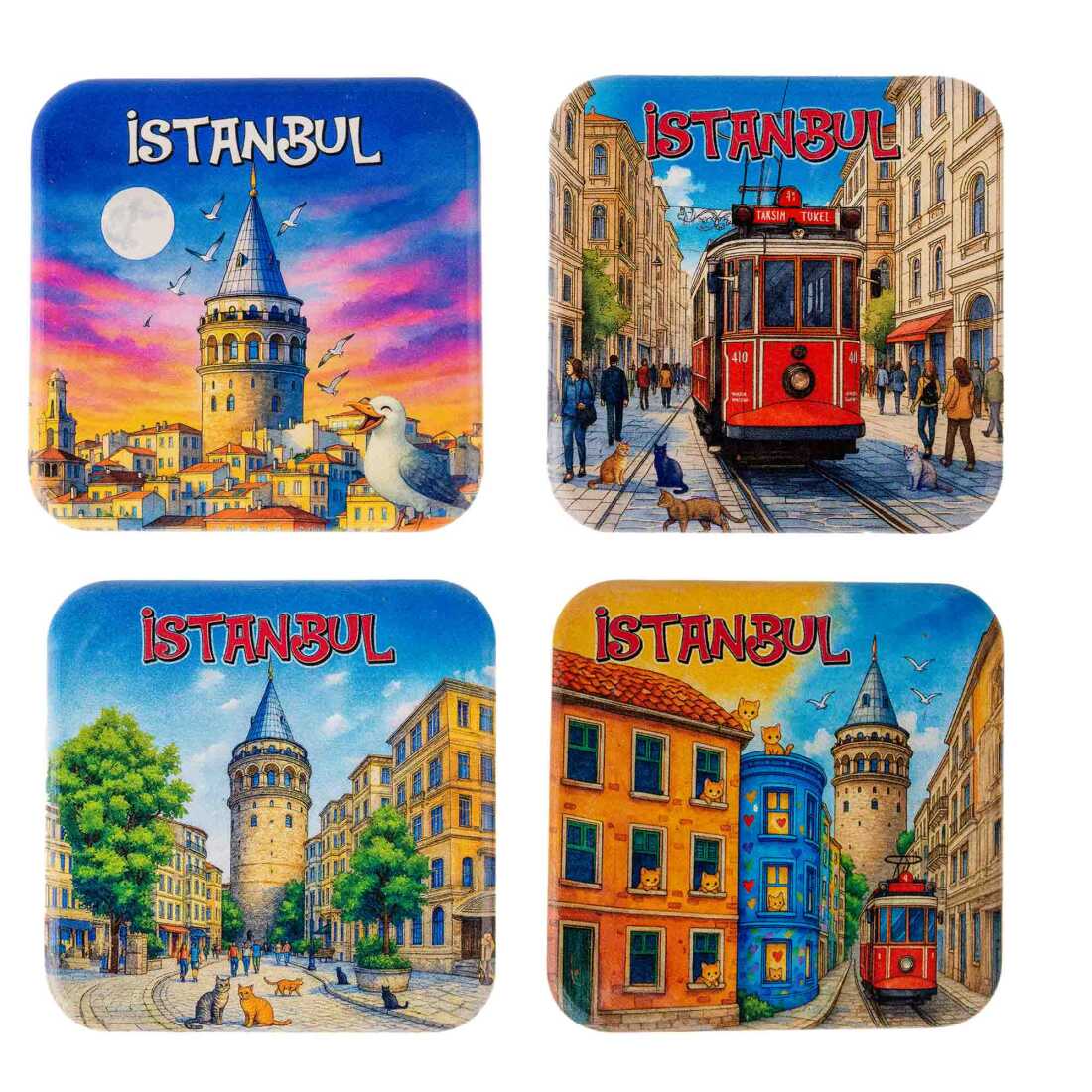 İstanbul Temalı Uv Kare Yöresel Bardakaltı 97 Mm