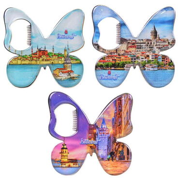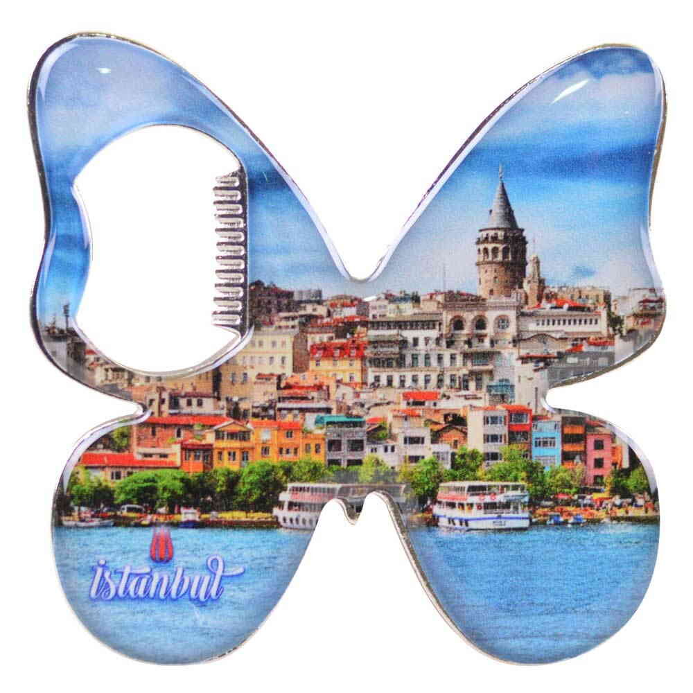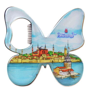 Istanbul Themed Butterfly Shaped Metal Magnetic Bottle Opener 70x70 mm