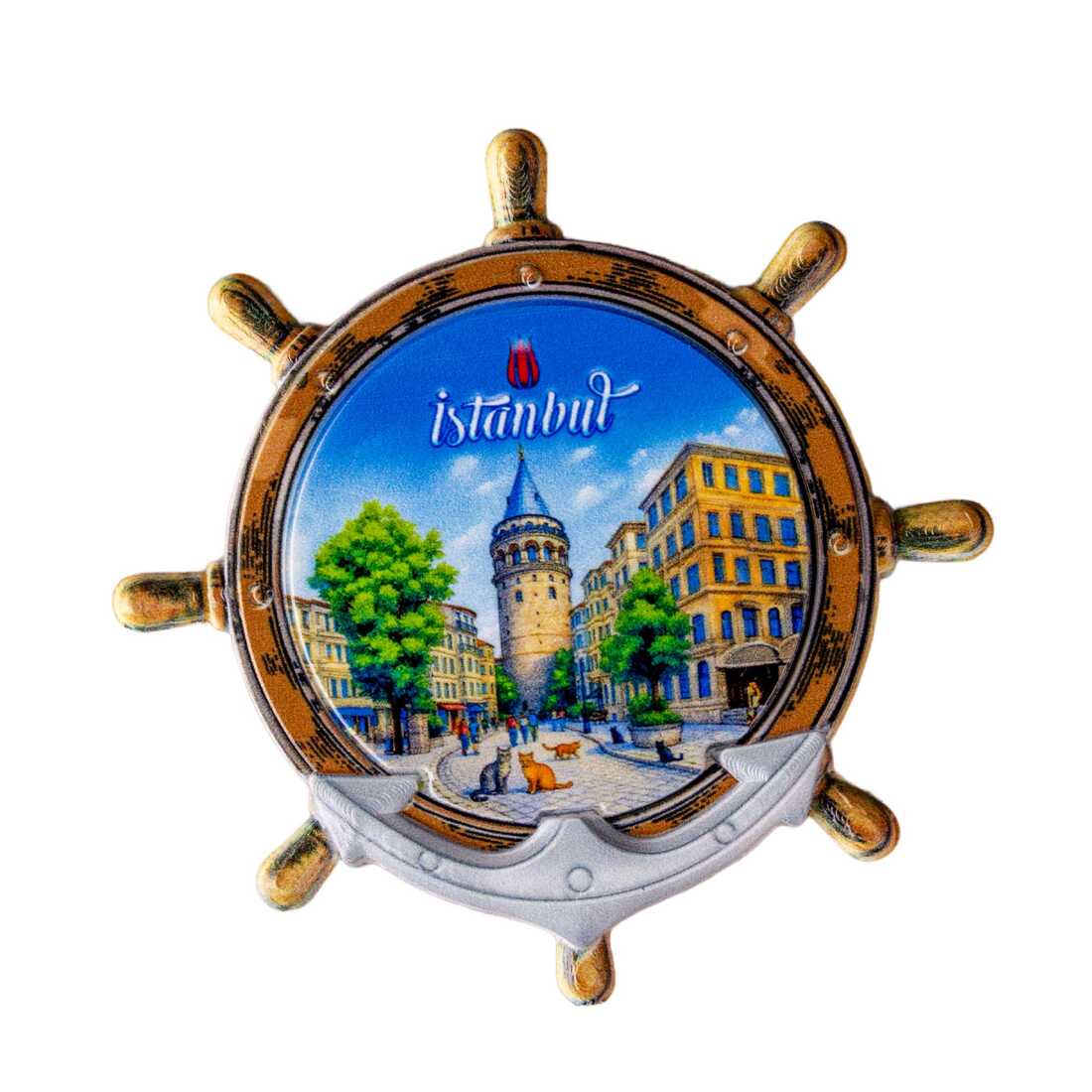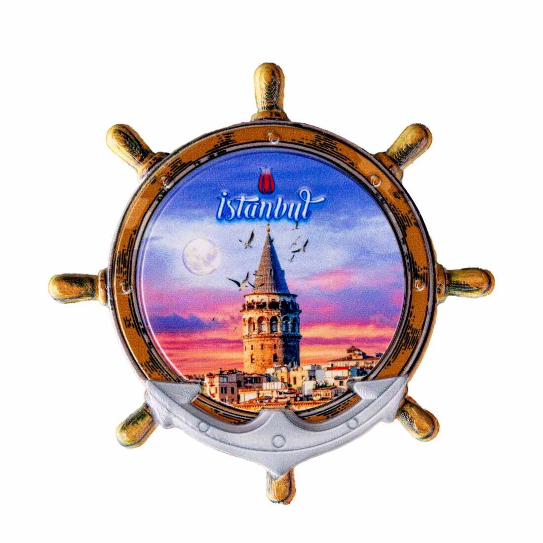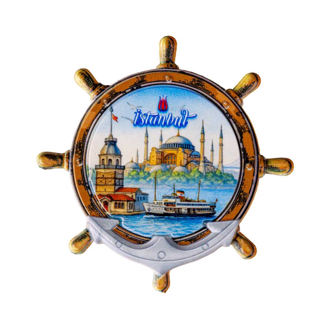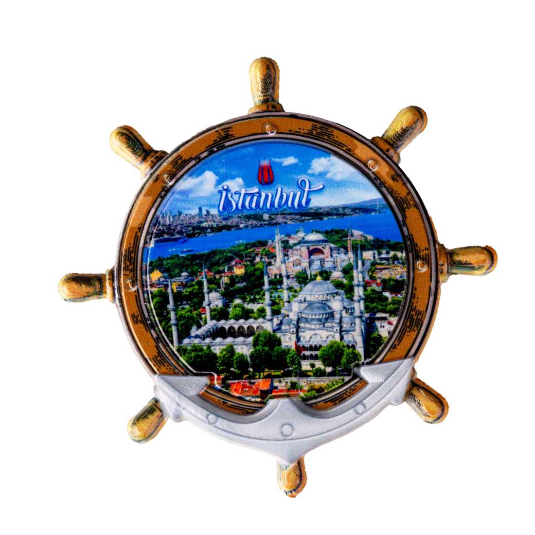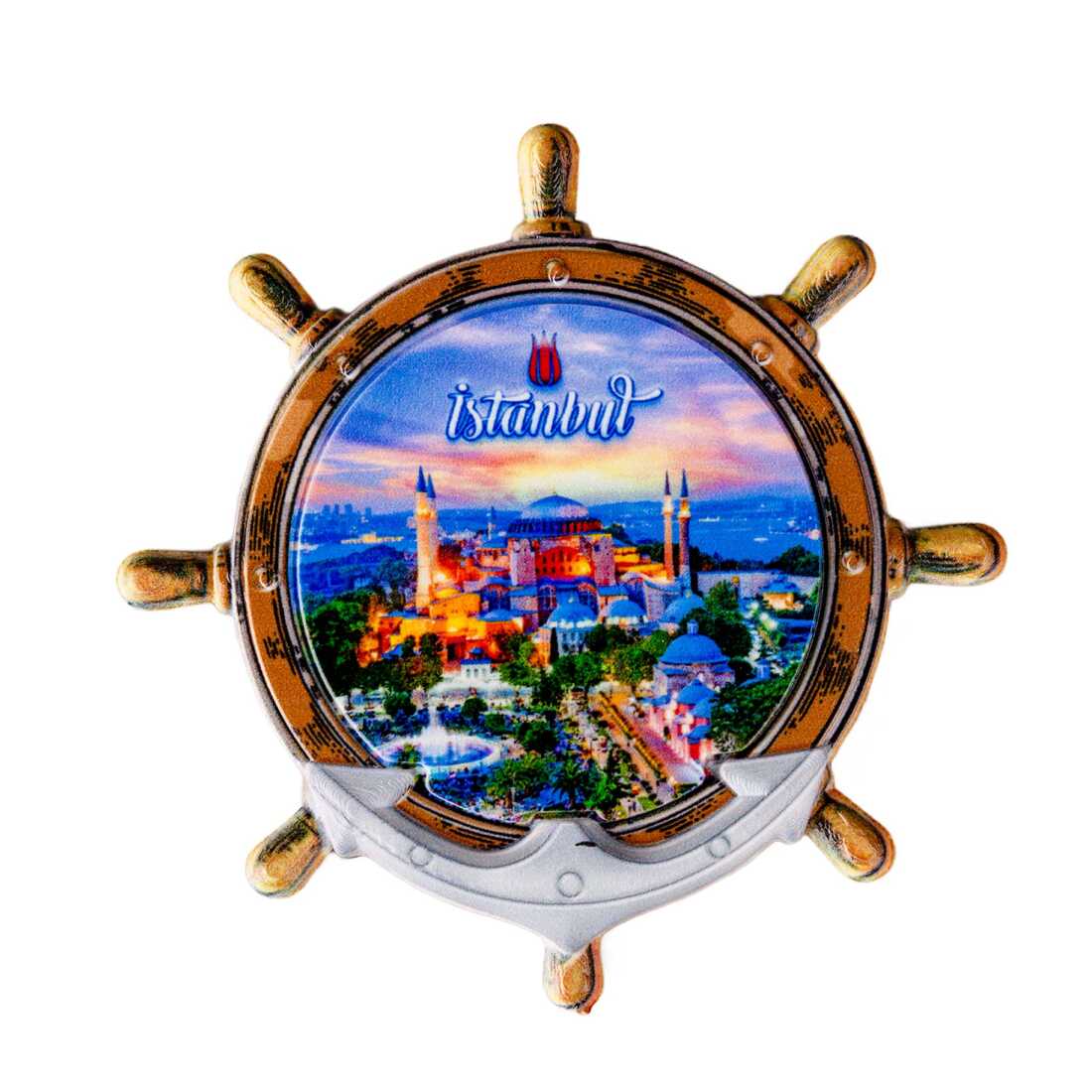 Istanbul Themed Customised UV Printed Plastic Base Marin Rudder Shaped Fridge Magnet 82x82 mm