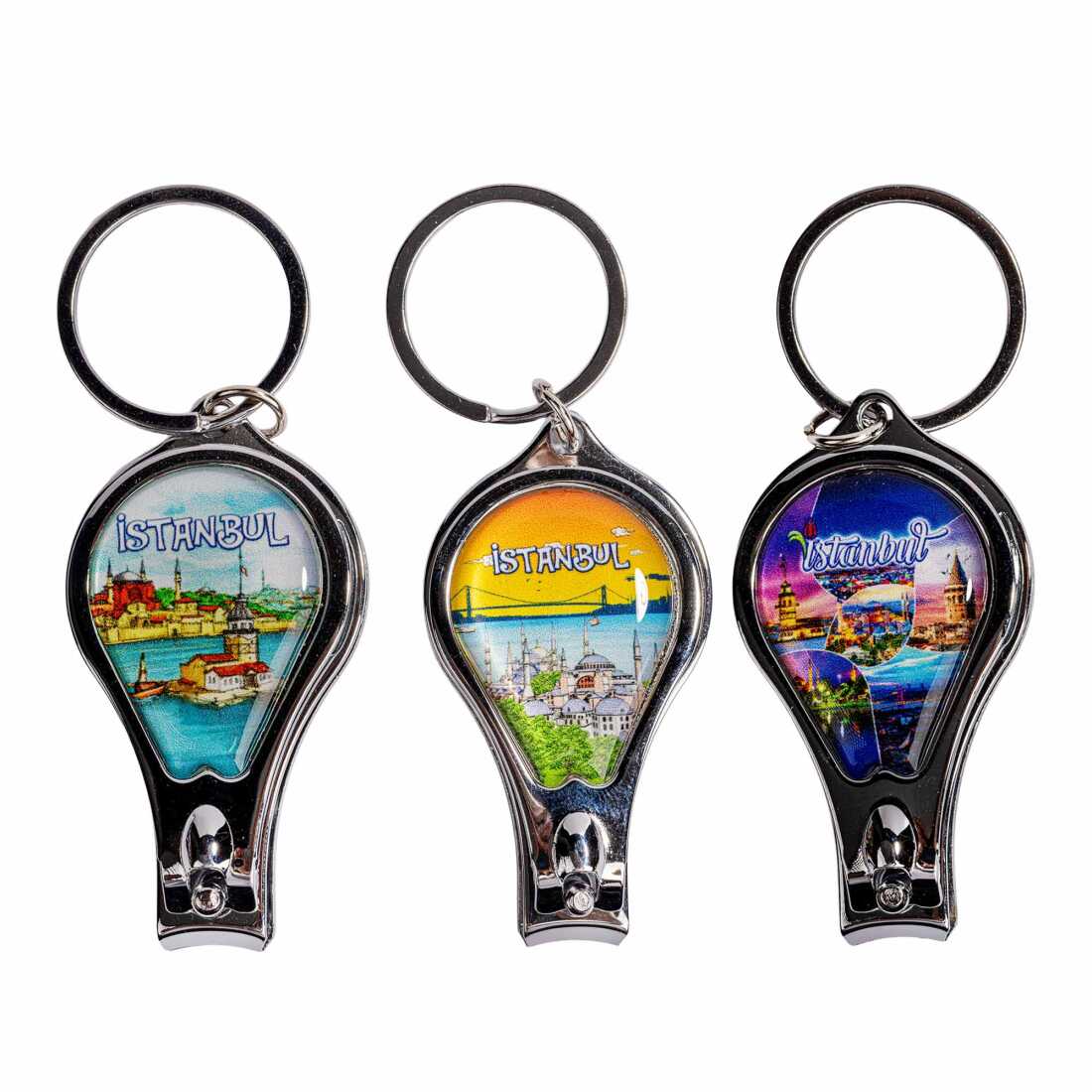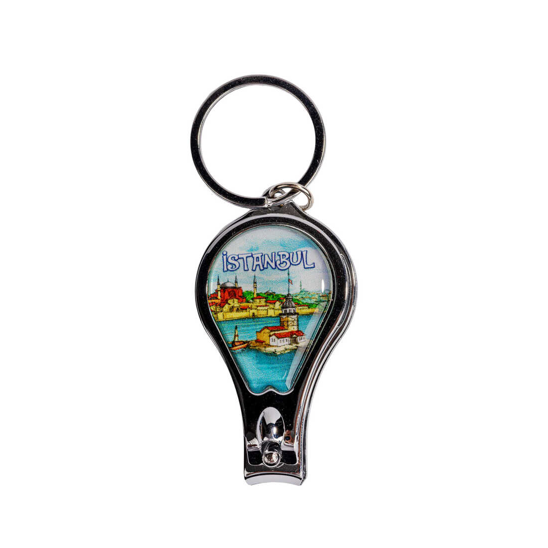 Istanbul Themed Metal Bottle Opener Oval Keychain Nail Clipper