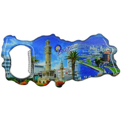 Izmir Themed Map Shaped Metal Magnetic Bottle Opener 100x45 mm