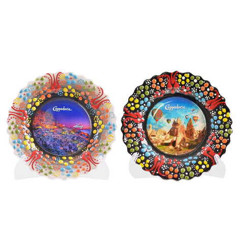 Kapadokya Themed Turkish Ceramic Plate With Epoxy 12 Cm