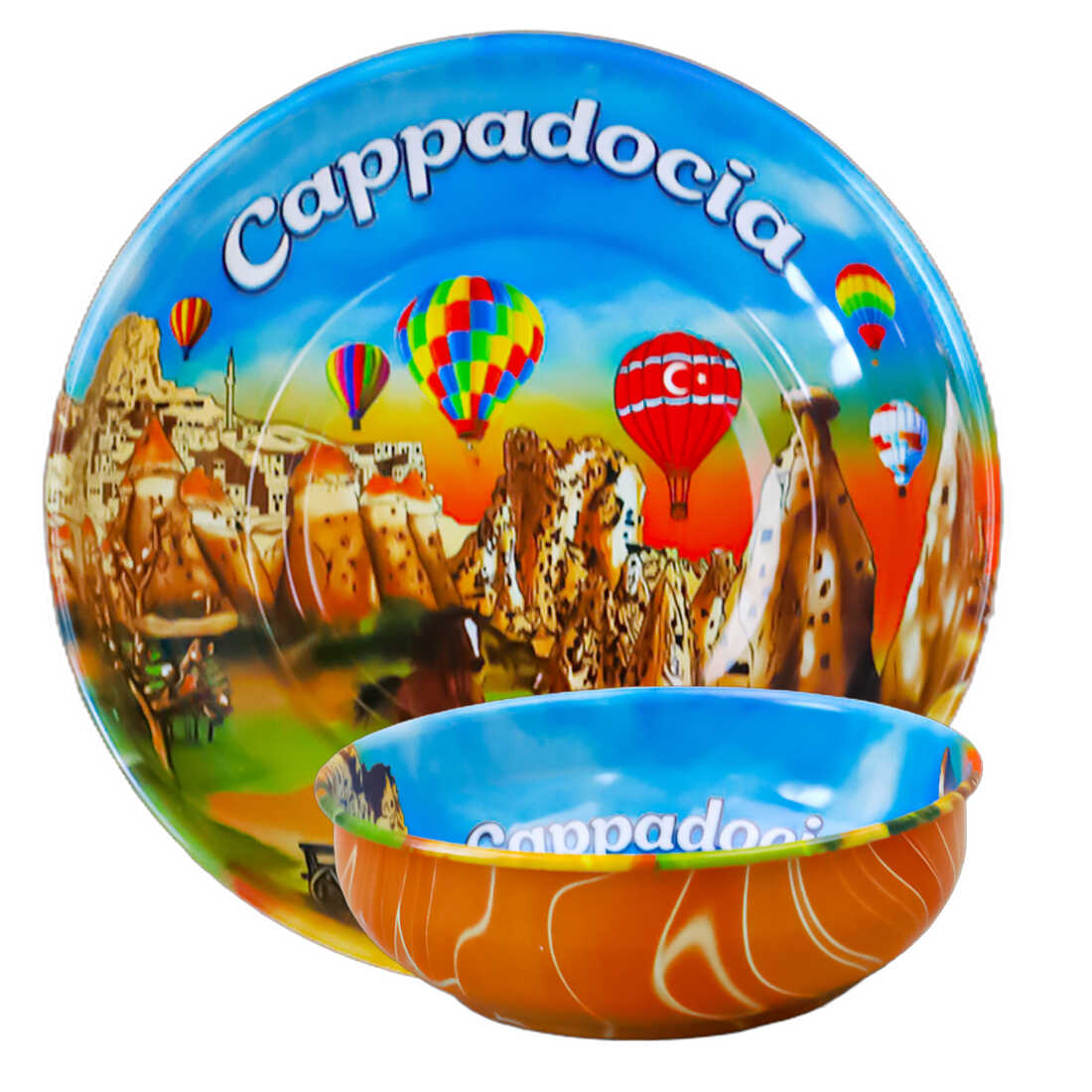 Toptan Kapadokya Temalı Myros Metal Resimli Tepsi 305x235 mm