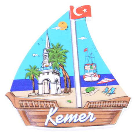 Kemer Themed Customised UV Printed Plastic Base Sail Ship Shaped Fridge Magnet 77x80 mm