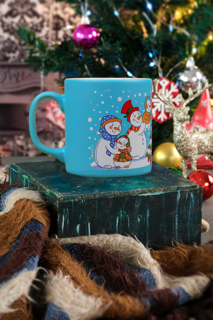 Toptan Mor Yılbaşı Figürlü Seramik Kupa