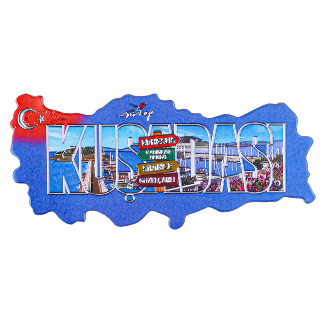 Kuşadası Temalı Metalize Harita Magnet
