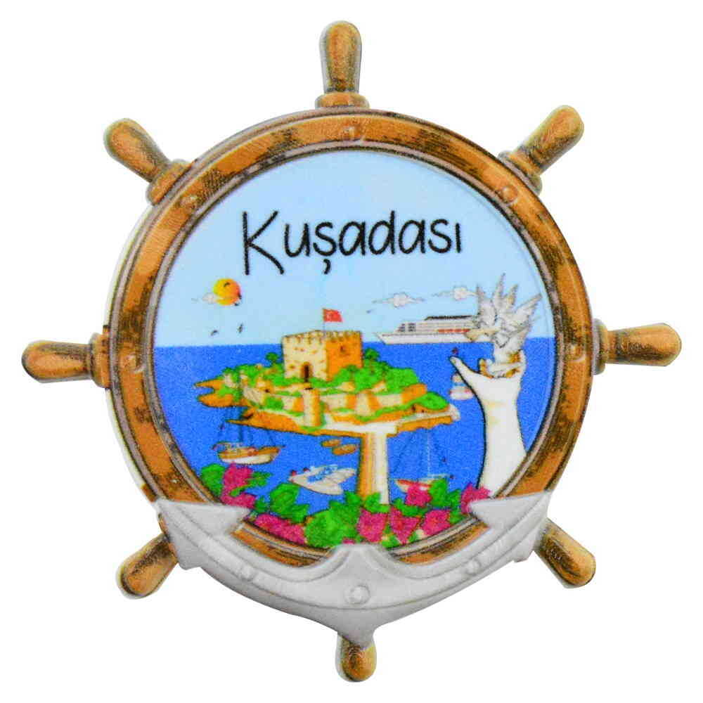 Kusadasi Themed Customised UV Printed Plastic Base Marin Rudder Shaped Fridge Magnet 82x82 mm