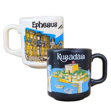 Kuşadası Themed Traditional Ceramic Cappuccino Mug