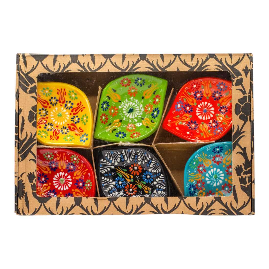 Lace Design Set of Six Leaf Shaped Snack Bowls in Gift Box