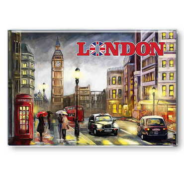 London Themed Epoxy Dome Rectangle Souvenir Fridge Magnet 80x55 mm
