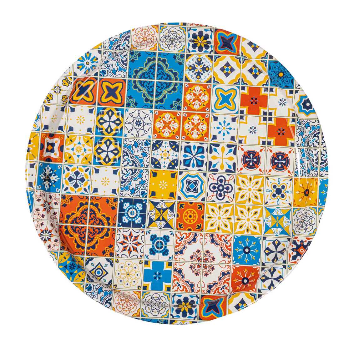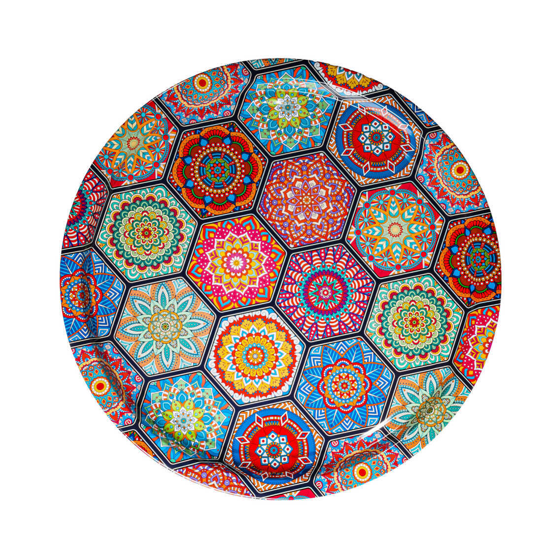 Mandala Temalı Metal Yuvarlak Tepsi 28 Cm