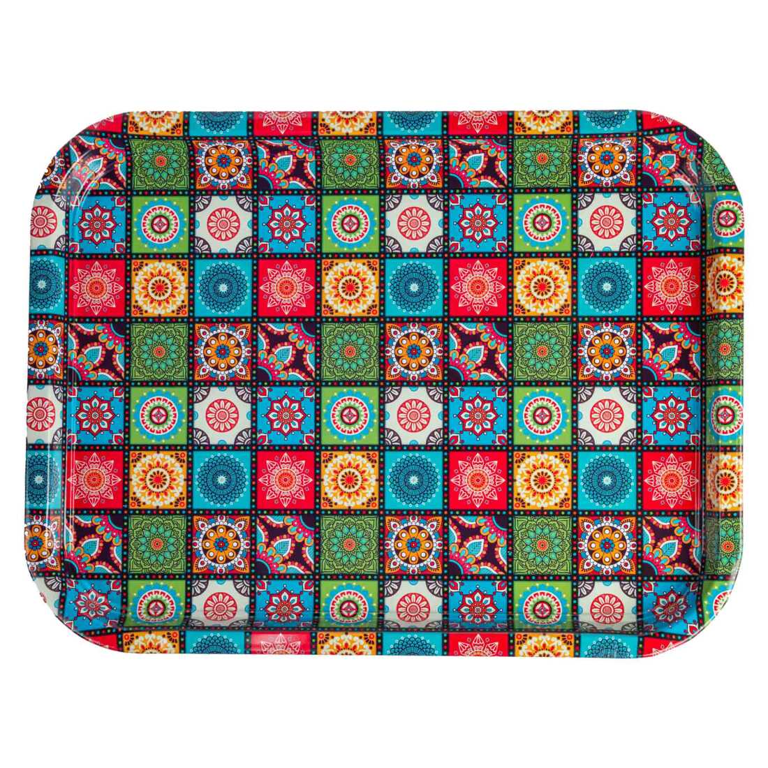 Mandala Themed Large Rectangular Metal Tray 295x225 Cm